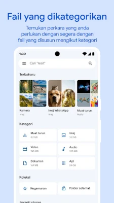 Adakah peranti anda terasa semakin perlahan dan sesak dengan lambakan fail? Dengan Files by Google, anda kini boleh mengambil alih kawalan penuh ke atas storan digital anda. Aplikasi pintar ini direka untuk membantu anda mengurus, mencari dan mengosongkan ruang dengan mudah, memastikan telefon pintar anda sentiasa beroperasi dengan lancar. Fahami penggunaan storan anda sepintas lalu, kenal pasti fail yang tidak perlu seperti foto lama daripada aplikasi sembang, fail pendua yang memakan ruang berharga, dan sampah cache yang mengganggu prestasi, semuanya dalam satu antaramuka yang intuitif.