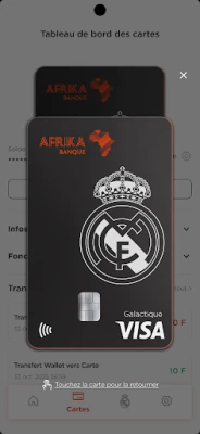 Afrika Banque juga melengkapi anda dengan pilihan kad yang fleksibel dan berkuasa. Nikmati kad maya percuma untuk urus niaga digital yang selamat, atau pilih kad Visa prabayar fizikal untuk pembelian yang lebih meluas, baik secara dalam talian mahupun di terminal jualan (TPE) di seluruh dunia. 'Tawaran Galaktik' daripada Afrika Banque dan Real Madrid ini direka untuk memberikan anda kawalan penuh ke atas kewangan anda, menjanjikan penyelesaian perbankan yang serba lengkap, intuitif dan sentiasa melindungi setiap transaksi anda.
