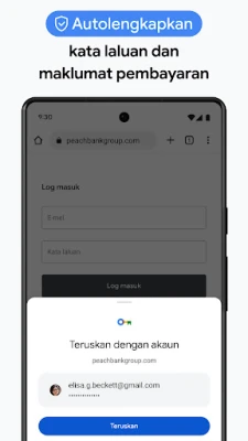 Nikmati kesinambungan tanpa cela dalam aktiviti melayari anda merentas semua peranti. Dengan penyegerakan merentas peranti, penanda halaman, tab terbuka, dan kata laluan anda sentiasa tersedia dan mudah diakses, sama ada anda menggunakan telefon, tablet atau komputer. Kumpulan Tab membolehkan anda mengatur ruang kerja digital anda dengan cekap, menyusun tab untuk kejelasan dan produktiviti yang lebih baik, terutamanya apabila bekerja merentas pelbagai projek. Selain itu, fungsi Autolengkap mempercepatkan pengisian borang, secara automatik mengisi butiran pembayaran, alamat, dan kata laluan anda yang disimpan, menjimatkan masa anda yang berharga dan memudahkan setiap transaksi dalam talian.