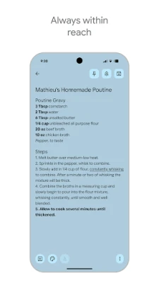 Organisasi adalah kunci kepada produktiviti, dan Google Keep memudahkannya dengan sistem kod warna serta label yang intuitif. Susun nota anda mengikut kategori atau kepentingan, membolehkan anda mencari apa yang diperlukan sepantas kilat melalui fungsi carian yang cekap. Merancang sesuatu bersama orang lain juga menjadi lebih lancar; kongsi nota Keep anda dengan rakan dan keluarga untuk bekerjasama secara masa nyata, menjadikan persediaan parti kejutan atau projek berkumpulan satu pengalaman yang menyeronokkan dan kolaboratif. Nota-nota penting boleh disematkan terus ke skrin utama anda menggunakan widget, memberikan akses segera kepada maklumat kritikal.