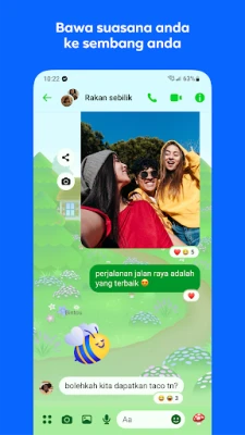 Beyond perbualan peribadi, Messenger mengundang anda untuk berinteraksi dengan komuniti yang selaras dengan minat anda, daripada kumpulan sekolah hingga saluran siaran pencipta kegemaran untuk kandungan eksklusif. Abadikan momen harian melalui Cerita dan kemas kini status yang hilang dalam 24 jam, berkongsi intipati hari anda secara visual. Sesuaikan ruang sembang anda dengan tema yang menarik, dan luahkan diri dengan lebih daripada perkataan – gunakan pelekat animasi, GIF, dan reaksi untuk menambahkan warna pada setiap interaksi. Messenger bukan sekadar aplikasi; ia adalah ekosistem lengkap untuk komunikasi, kreativiti, dan komuniti, direka untuk memudahkan setiap aspek hubungan digital anda.