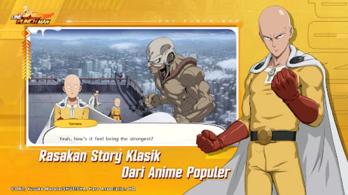 Benamkan diri anda sepenuhnya dengan barisan karakter paling digemari dan tulen dalam "One Punch Man: The Strongest". Dari Saitama yang kuat mengikut hobinya, Genos si siborg setia, Speed-o'-Sound Sonic yang pantas, hingga Tatsumaki dengan kuasa telekinesisnya dan Fubuki si ketua Hero Kelas B, setiap perincian watak disesuaikan dengan sempurna dari anime asal. Anda juga akan berdepan dengan makhluk ikonik seperti Boros dan musuh-musuh lain. Untuk pengalaman yang lebih mendalam, pasukan pelakon suara asli dari siri anime telah kembali sepenuhnya, menghidupkan setiap dialog dan aksi, memastikan anda merasai setiap detik kisah pertarungan keadilan melawan kekacauan, seperti yang digambarkan dalam Asosiasi Hero.