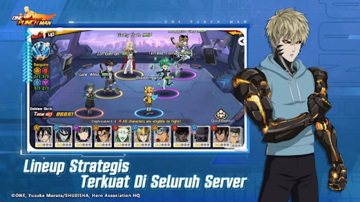 Kemenangan di medan perang "One Punch Man: The Strongest" bergantung pada kecerdasan strategik anda. Kumpulkan pasukan impian anda dari pelbagai pahlawan dan raksasa, masing-masing dengan jenis unik mereka seperti Grappler, Duelist, Hi-Tech, dan Super. Gabungkan watak-watak ini secara bijak untuk mengaktifkan bonus faksi yang kuat, membolehkan anda mendominasi arena PvP yang sengit dalam format 3V3 atau 6V6, atau dalam pertarungan Hero vs Monster yang menegangkan. Selami pelbagai mod permainan yang inovatif, daripada penjelajahan mendalam dan ujian mencabar hingga pertarungan bos epik dan misi RPG yang kaya ganjaran. Malah, ada mod khusus di mana anda boleh merasai sendiri kekuatan Saitama, menamatkan setiap cabaran dengan satu tumbukan ikonik.