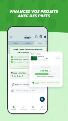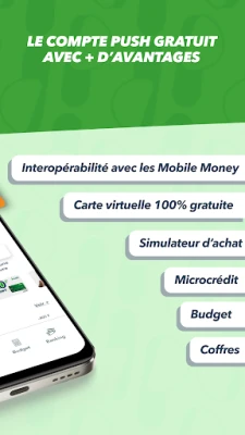 Push memperkasakan anda dengan ciri-ciri yang komprehensif. Berhubung lancar dengan pelbagai perkhidmatan Mobile Money seperti Orange Money, MTN, Moov, dan Wave, memastikan transaksi anda sentiasa mudah. Pesan kad fizikal peribadi anda yang boleh disesuaikan, dihantar terus ke pintu anda dalam masa 2 jam sahaja. Dengan Push, anda boleh mengeluarkan wang tunai dari mana-mana ATM di seluruh dunia dan melakukan pembelian dalam talian atau di kedai, di mana sahaja anda berada. Pantau perbelanjaan anda dengan sejarah transaksi masa nyata dan manfaatkan kadar pertukaran mata wang yang menguntungkan serta menu belanjawan peribadi untuk pengurusan kewangan yang lebih bijak.