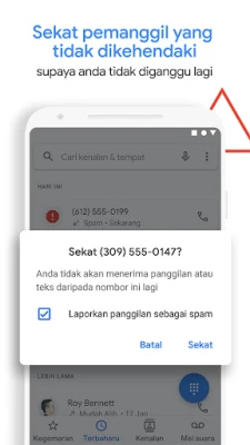 Tinggalkan kerisauan tentang panggilan yang tidak diingini. Dengan Apl Telefon, dunia anda bebas dari gangguan spam, jurujual telesales, dan penipu yang licik. Sistem perlindungan canggih kami secara proaktif mengenal pasti pemanggil yang mencurigakan, memaparkan amaran yang jelas sebelum anda menjawab. Anda kini boleh dengan yakin mengenali panggilan penting dari perniagaan yang sah berkat liputan ID pemanggil Google yang meluas. Sekat nombor yang mengganggu dengan mudah dan pastikan ketenangan anda tidak terganggu.